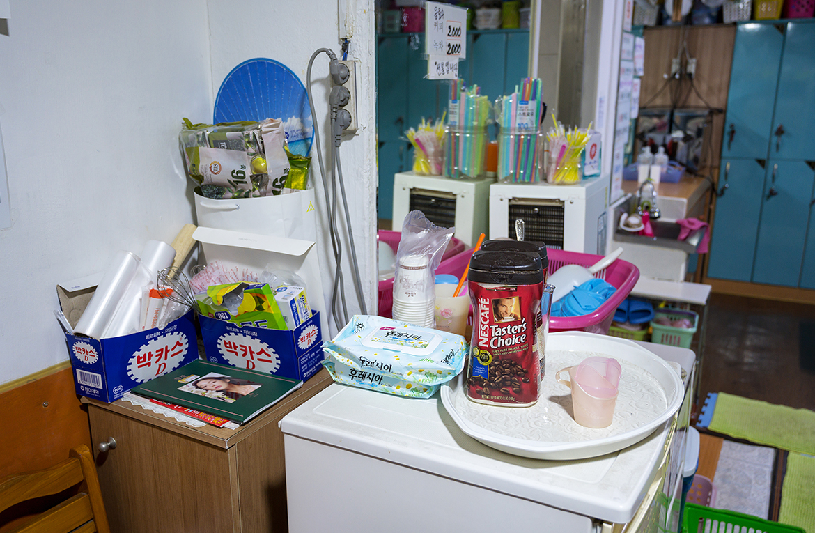 이발사가 있는 남탕과 달리 여탕에는 음료수를 판매하는 ‘탄산언니’가 있다. 보통은 ‘음료수 아주머니’라 불리지만 연구자가 갔던 어느 목욕탕에서는 특이하게 탄산언니라 불렀다. 이유인 즉 탄산음료를 이용한 독특한 음료수 제조 비법이 있다고 한다. 이온음료나 비타민 음료만 있는, 그마저도 잘 팔리지 않는 남탕과 달리 여탕의 음료수는 매우 다양하다. 그 중에서도 별미는 얼음을 가득 넣은 커피로 사우나 필수품이라고 한다. 얼음 리필은 불가라 하니 녹기 전에 호로록 마셔야 할 것 같다.