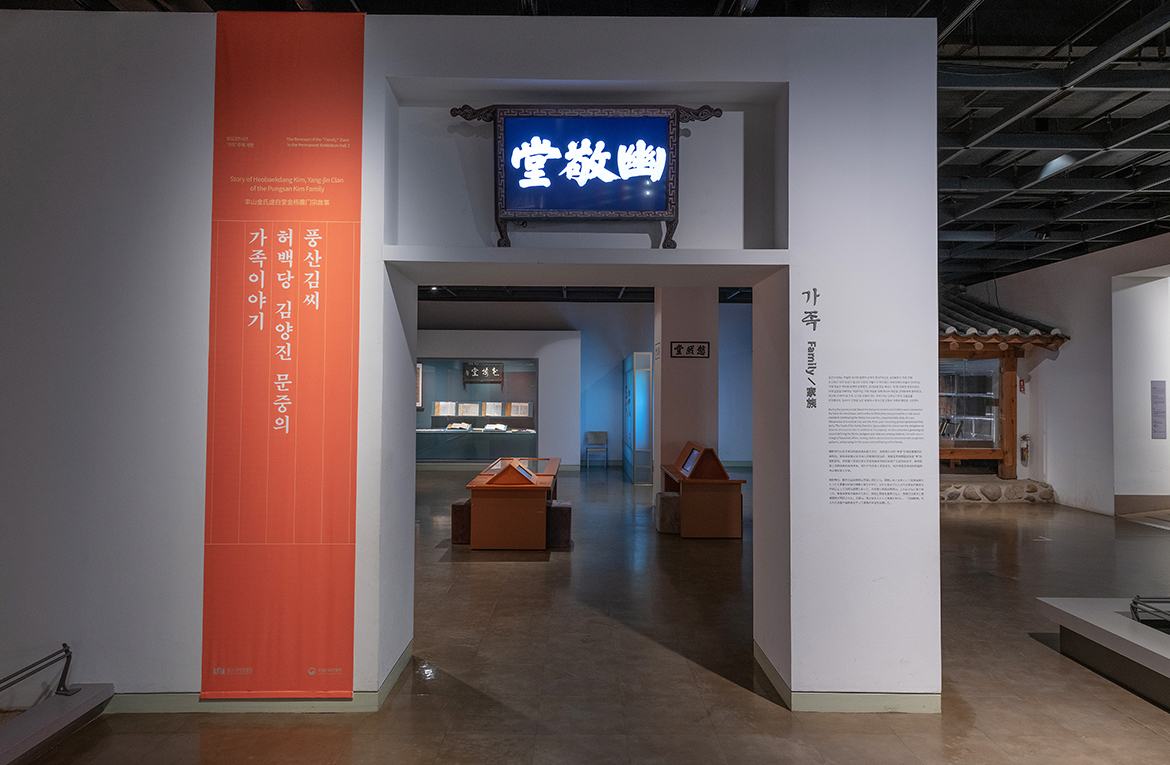 국립민속박물관은 해마다 5월 가정의 달을 맞이하여 한국국학진흥원과의 협업을 통해 상설 전시관 3 ‘가족’ 코너를 개편해왔다. ‘가족’은 사람이 태어나 처음으로 맞이하는 생활공동체로 일상생활과 가정교육이 이루어지는 집단이다. 상설전시관 3은 조선시대1392~1910 양반 사대부 집안의 개인이 태어나 죽을 때까지 겪게 되는 주요한 과정을 ‘한국인의 일생’ 이라는 주제로 전시하고 있으며, 그 가운데 ‘가족’ 코너는 조선시대 명문가의 가계 계승과 가학家學의 전승을 소개하고 있다. 이번에는 ‘이치理致를 깨닫고 나라를 생각하는 풍산김씨 허백당 김양진 문중의 가족이야기다.