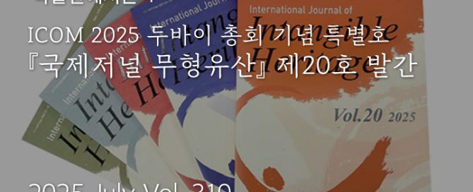글 공선희(민속연구과 학예연구원) 올해 『국제저널 무형유산』 20번째 학술지가 [...]